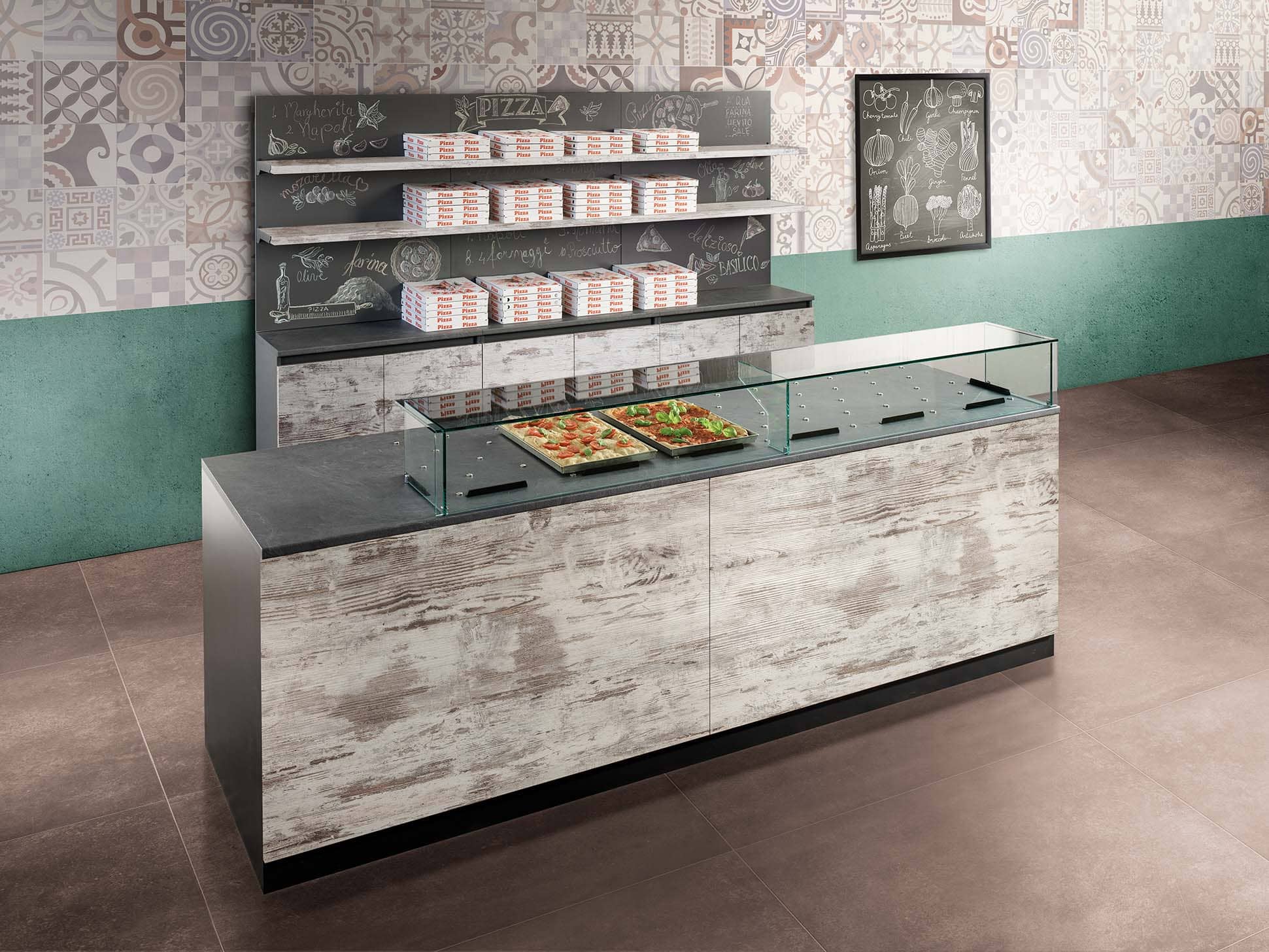 3. Pizzeria al taglio / da asporto Produzione e vendita di pizza in teglia o al metro, per consumo veloce o da portare via.